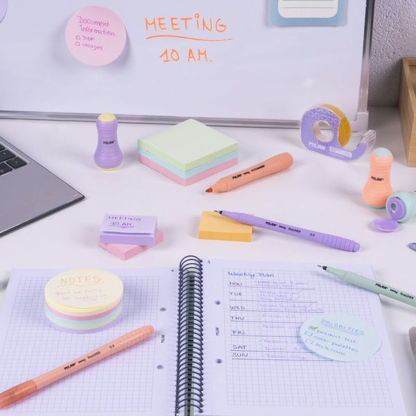 Los 3 Blocs de Notas Adhesivas Rectangulares Milan – Edición Tres Colores Pastel (38×50 mm) son perfectos para quienes necesitan recordar ideas al instante. En nuestra papelería Badajoz, son un básico para universitarios, opositores y oficinas porque se adhieren y despegan sin dejar rastro, permiten clasificar por colores y tienen un tamaño perfecto para agendas, apuntes, libros o pantallas. Su adhesivo removible evita manchas y facilita reorganizar tareas sin estropear documentos. Ideales para técnicas de estudio tipo método Cornell, resúmenes colorimétricos y planificación diaria.