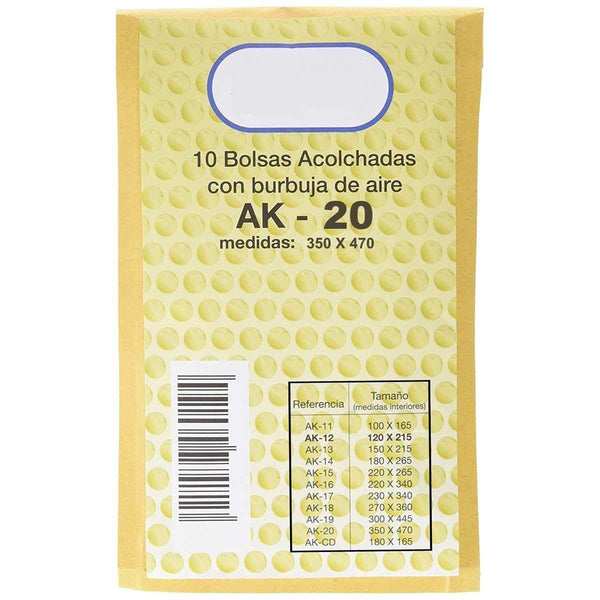 Las Bolsas Sobre Acolchadas Sam AK-20 de 350×470 mm en papel kraft con burbujas de aire y solapa adhesiva estan diseñadas para proteger documentos y productos durante el envio o almacenamiento. Su interior acolchado con burbujas absorbe golpes y vibraciones, mientras que la solapa adhesiva garantiza un cierre rapido y seguro. Una solucion habitual en Papelería Copistería Badajoz para empresas, comercios y particulares que buscan papelería cerca de mí con embalaje profesional.