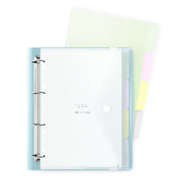 El Carpeblock 360 A4 Polyfoam Azul Pastel de Carchivo es el compañero ideal para mantener tus apuntes y proyectos bajo control. Con apertura de 360 grados, incluye un recambio de 100 hojas cuadriculadas 5x5 mm de 90 g, calendario, planning semanal y anual, tracker de estudios y separadores extra fuertes. Disponible en tu papelería en Badajoz, combina organización, resistencia y un diseño pastel que motiva a estudiar con orden y estilo.