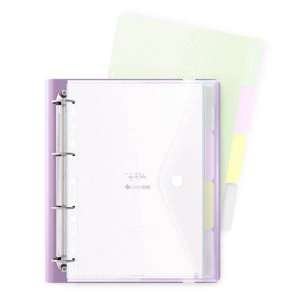 El Carpeblock 360 A4 Polyfoam My Rules Malva Pastel de Carchivo combina diseño, capacidad y durabilidad en una sola pieza.