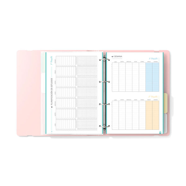 Un carpeblock que combina resistencia, practicidad y diseño pastel. Ideal para gestionar asignaturas, proyectos y planificar objetivos académicos con todo en un mismo soporte.