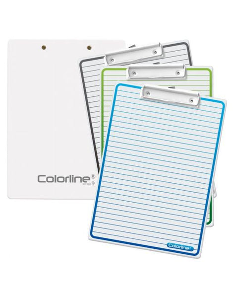 La Carpeta con Pinza y Guía Falsilla Colorline Tamaño Folio con superficie rígida y pinza metálica de sujeción es una herramienta imprescindible para quienes trabajan con documentos sueltos y necesitan escribir con estabilidad. Incorpora guía falsilla integrada para mantener una escritura recta y ordenada sin necesidad de cuaderno.