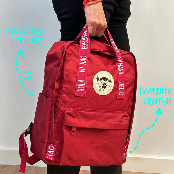 🎒 Mochila Saludos del Mundo Roja – Pepita Viajera en Badajoz