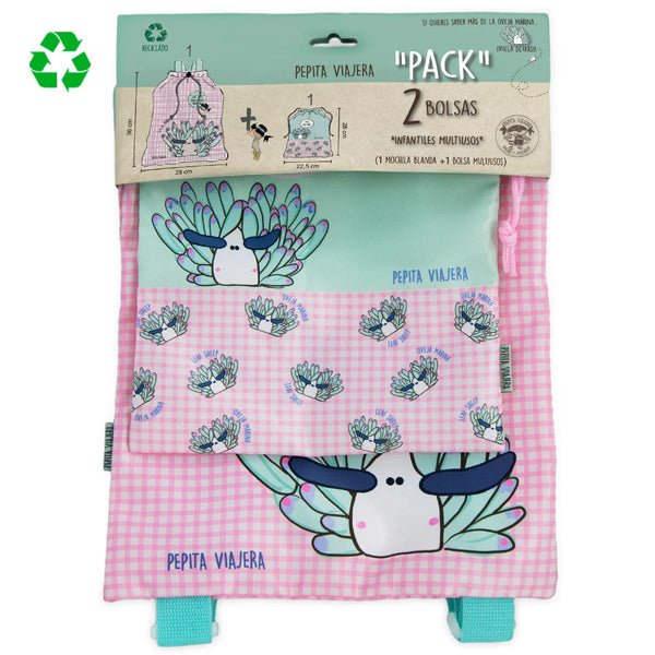 🎒 Pack Mochila de Cuerdas + Bolsa Multiusos Oveja Marina – Pepita Viajera en Badajoz