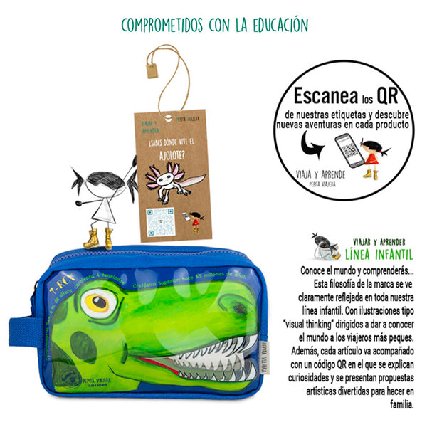 🦕 Neceser Transparente Infantil Dinosaurios – Pepita Viajera – Papelería en Badajoz