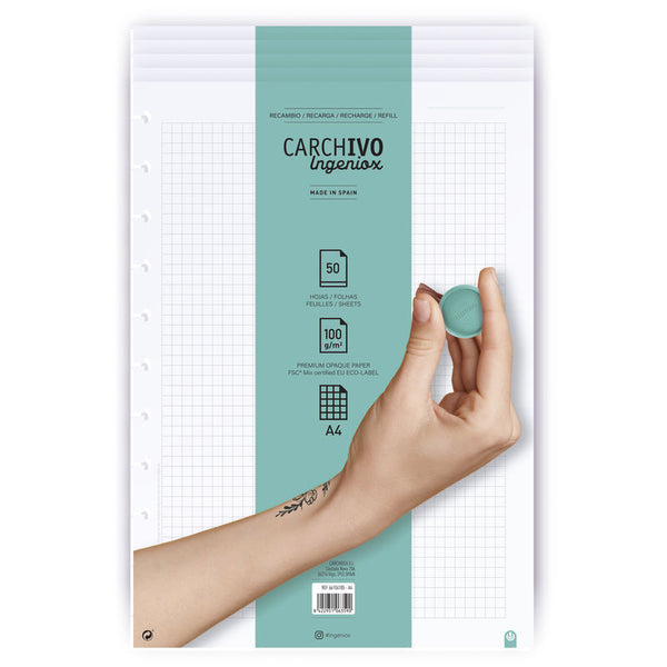 📘 Recambios Carchivo / Cuadernos Inteligentes Ingeniox® A4 Cuadriculado 5x5 (50H – 100 g/m²) en Badajoz