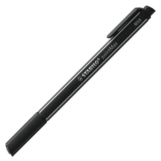 El STABILO pointMax ofrece una experiencia de escritura suave y consistente gracias a su punta robusta de nylon y su trazo medio de 0,8 mm. Perfecto para notas, bocetos y tareas diarias, este rotulador mantiene su tinta intacta incluso tras 24 h sin tapón. Ideal para docentes, estudiantes, profesionales y amantes de la papelería Badajoz que buscan calidad y durabilidad.